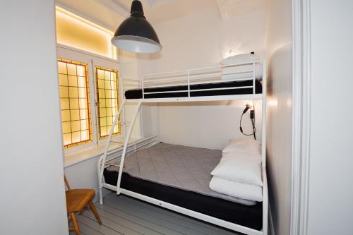 I detta luftkonditionerade rum finns våningssängar med sänglampor. Badrum delas med andra gäster.