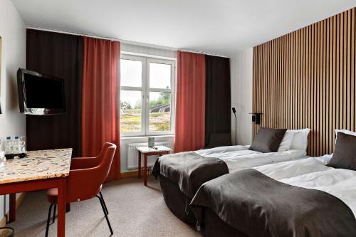 Detta hotell ligger 4 minuters promenad från huvudterminalen på Landvetters flygplats, och erbjuder ljusa rum med platt-TV. Här är både WiFi och parkering gratis, och du bor 20 minuters bilresa från centrala Göteborg.Alla rum på Landvetter Airport Hotel har trägolv och inredning i skandinavisk stil. Vissa rum har dessutom en sittgrupp med soffa.